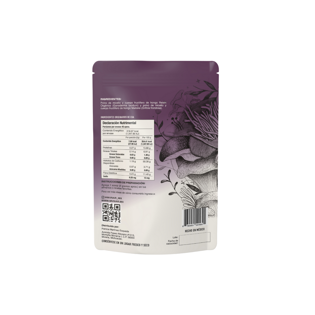 Polvo de hongo Reishi y Maitake. La combinación perfecta ya que contienen compuestos que, ayudan a regular los niveles de azúcar en la sangre y reducen la resistencia a la insulina.