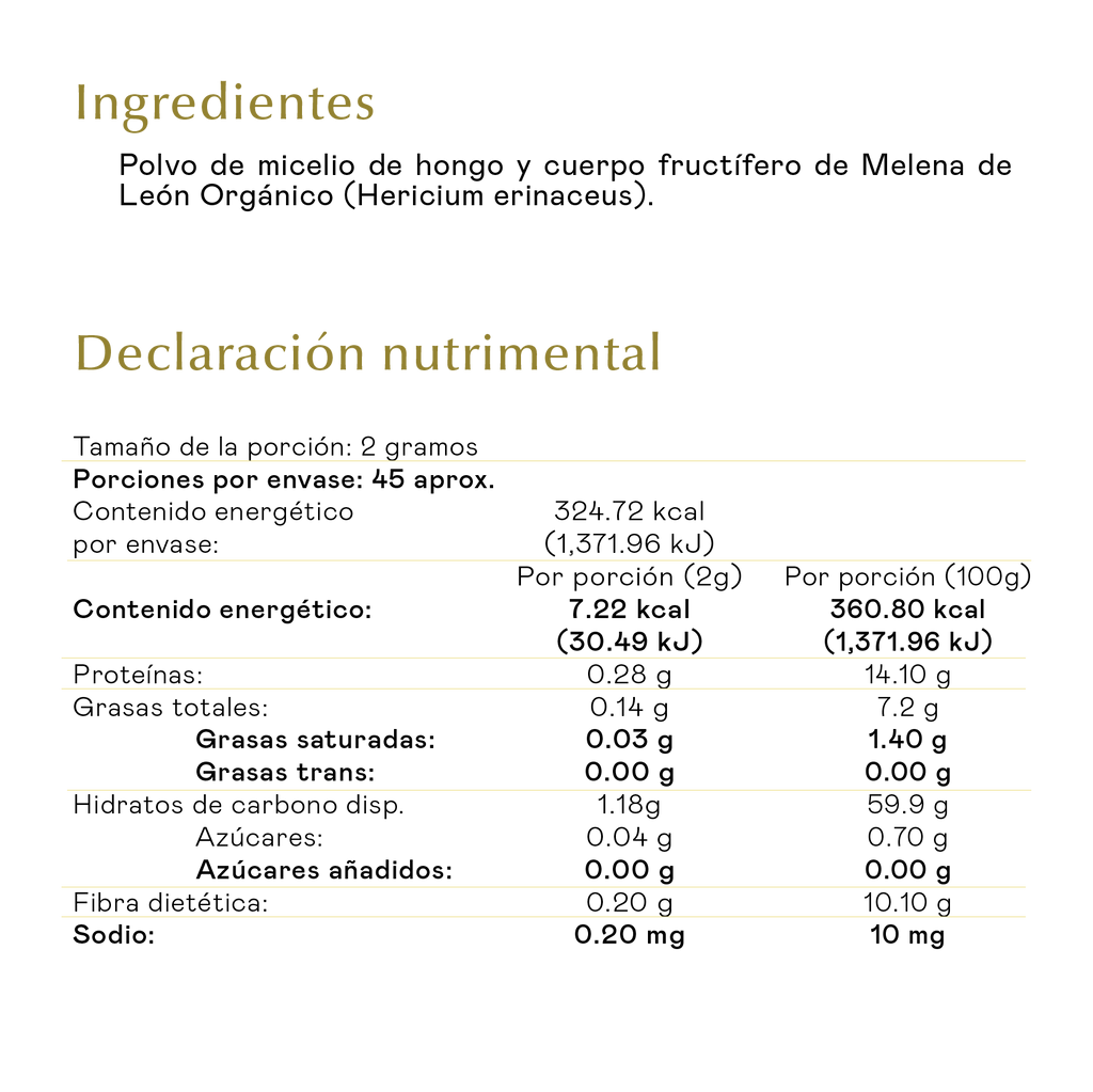 Polvo de micelio de hongo y cuerpo fructífero de Melena de León orgánico (Hericium erinaceus)
